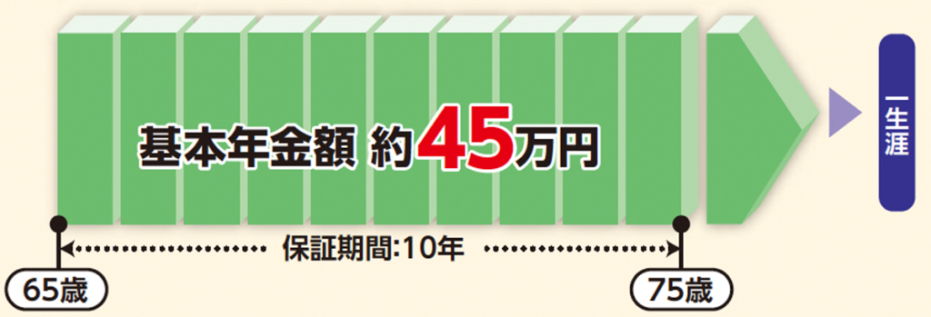 ・記載の年金額は、2023年10月現在の基礎率に基づいて計算しています。実際の年金額は特約付加時の基礎率で計算されますので、将来変更されることがあります。